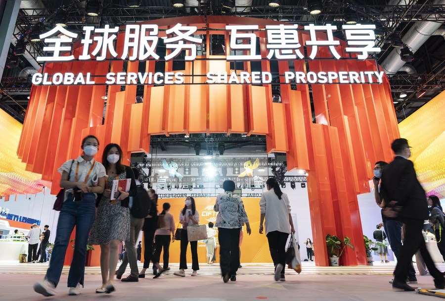 People visit the exhibition during the 2022 China International Fair for Trade in Services (CIFTIS) in Beijing, capital of China, Sept. 1, 2022. (Xinhua/Cai Yang)