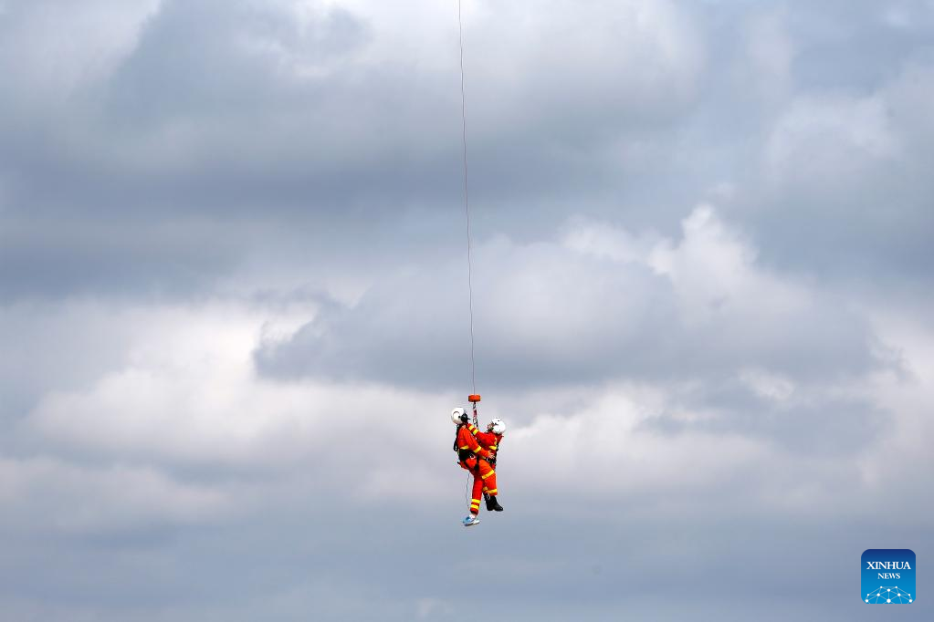 A rescue demonstration is seen during Bucharest International Air Show &General Aviation Exhibition in Bucharest, Romania, on Sept. 4, 2022. (Photo by Cristian Cristel/Xinhua)