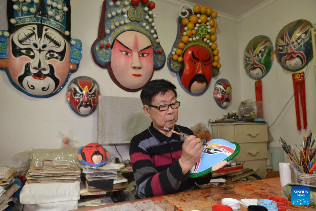 Zhang Zhi, 85, makes Chinese opera masks at home in Xinhua District of Shijiazhuang, north China's Hebei Province, Oct. 2, 2022. Chinese elderly enjoy retired life as they indulge in their hobbies. (Photo by Yan Zhiguo/Xinhua)