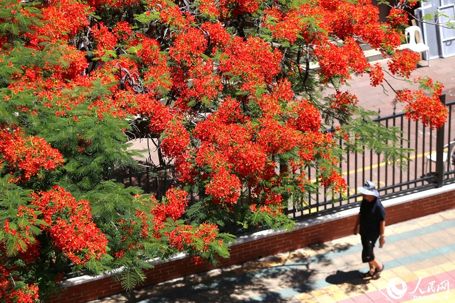 Flowering flame trees along a road in Xiamen city, southeast China's Fujian Province. (People's Daily Online/Chen Bo)