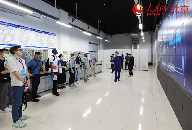 Members of the “Hello, Carbon Neutrality” research group visit Energy Station No. 6 at Beijing Gas, located in the Beijing Municipal Administrative Center. (People’s Daily Online/Yin Xingyun)