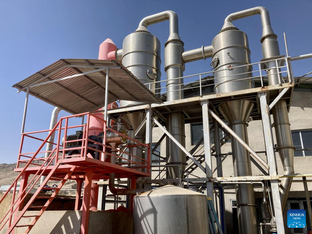 This photo taken on Oct. 7, 2023 shows the exterior view of Afghanistan's first-ever tomato paste plant in Kandahar Province, Afghanistan. The plant has been established here and began operation recently, head of Kandahar Industrial Park Mufti Ali Mohammad said Thursday. (Photo by Arghand/Xinhua)
