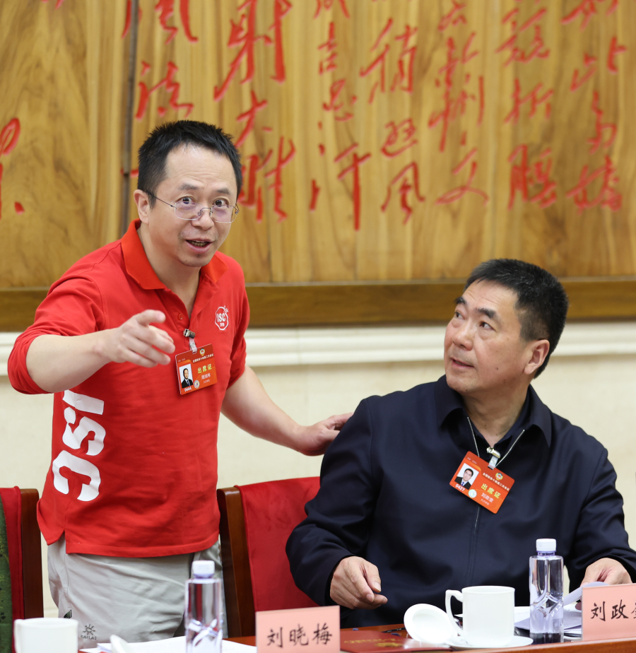 Yuan Xiaobin, left, a member of the 14th National Committee of the Chinese People's Political Consultative Conference, speaks at a panel discussion on the Government Work Report on March 6, 2024. [Photo by Zou Hong/chinadaily.com.cn]