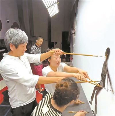 The artists in the video are Xue Hongquan, an inheritor of the intangible cultural heritage of shadow puppetry from northwest China's Shaanxi Province, and his two apprentices.