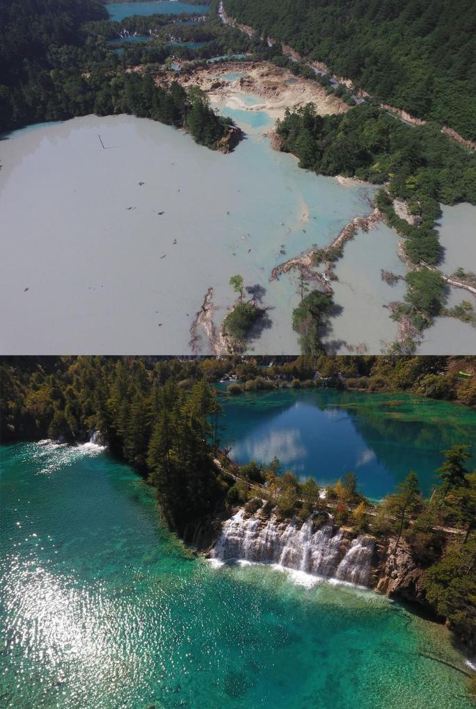 After the earthquake, a team led by professor Pei Xiangjun from Chengdu University of Technology carried out protection and restoration work of the natural heritage site. After years of post-quake reconstruction, the once scarred Jiuzhaigou has regained its glory.