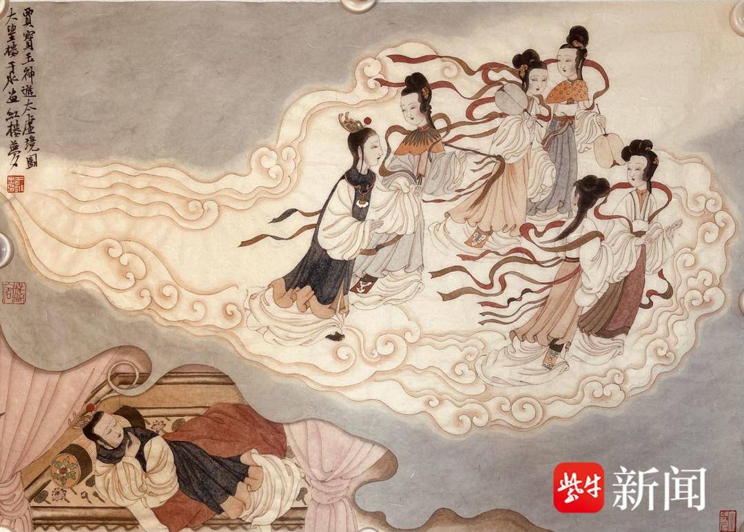 Photo shows a painting of a scene from "Dream of the Red Chamber ", one of the four great Chinese classical novels. The painting is created by a 69-year-old Chinese painter named Yu Shui. (Photo/yangtse.com)