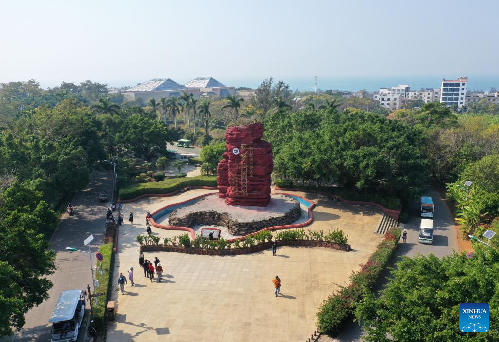 An aerial drone photo taken on Jan. 18, 2025 shows people visiting the Weizhou Island in south China's Guangxi Zhuang Autonomous Region. Weizhou Island, located in the Beibu Gulf, is China's youngest volcanic island. In recent years, the local government has strengthened marine ecological protection and developed infrastructure on the island, making it a popular tourist destination. (Xinhua/Jin Haoyuan)