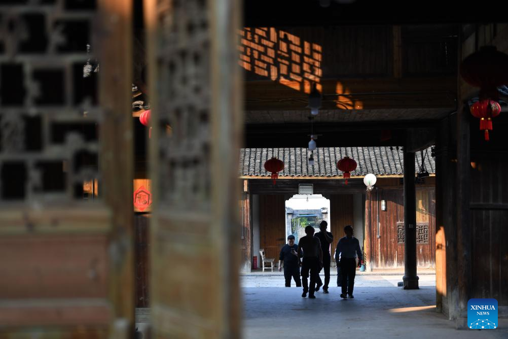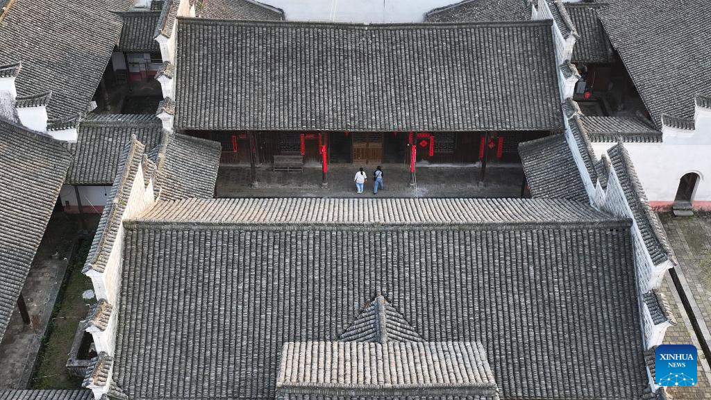 People visit the Zhou Family Courtyard in Lingling District of Yongzhou City, central China's Hunan Province, March 25, 2025. Boasting a history of hundreds of years, the Zhou Family Courtyard and the Hu Family Courtyard, with their houses crisscrossing in a tightly structured and meticulously arranged layout, showcase a long history and rich cultural heritage of traditional Chinese villages. (Xinhua/Zhao Zhongzhi)