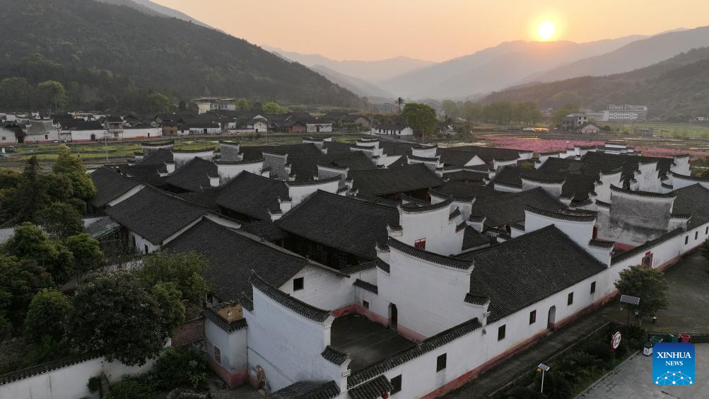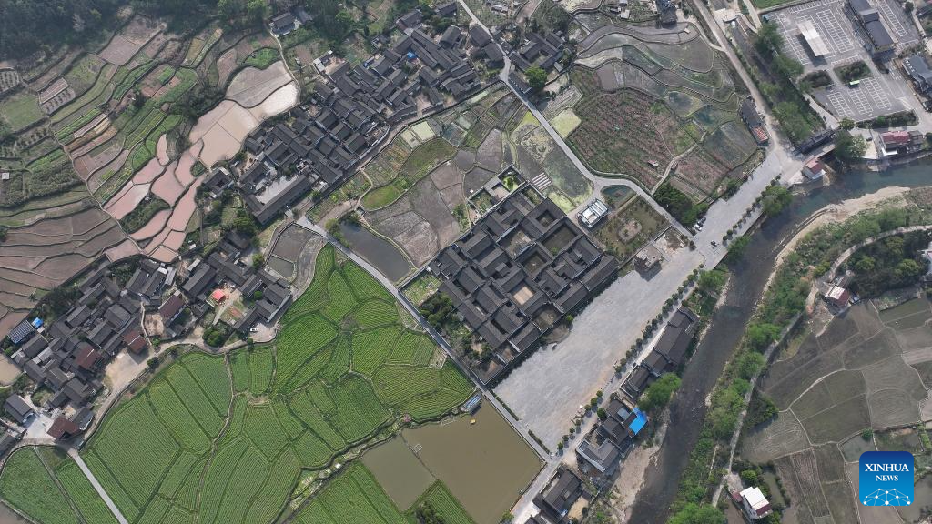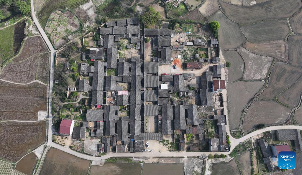 A drone photo taken on March 25, 2025 shows a panoramic view of the Zhou Family Courtyard in Lingling District of Yongzhou City, central China's Hunan Province. Boasting a history of hundreds of years, the Zhou Family Courtyard and the Hu Family Courtyard, with their houses crisscrossing in a tightly structured and meticulously arranged layout, showcase a long history and rich cultural heritage of traditional Chinese villages. (Xinhua/Zhao Zhongzhi)