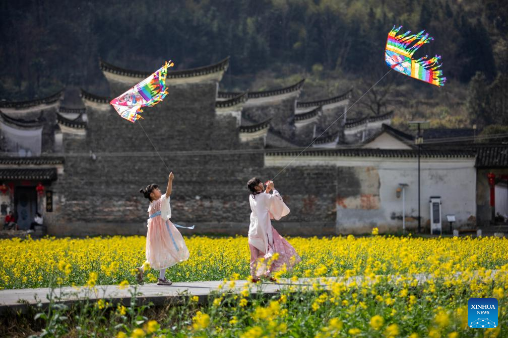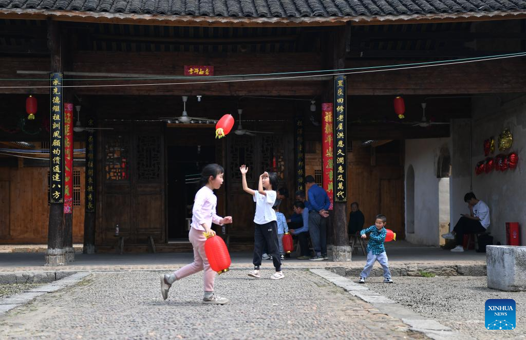 Children have fun at the Hu Family Courtyard in Lingling District of Yongzhou City, central China's Hunan Province, March 26, 2025. Boasting a history of hundreds of years, the Zhou Family Courtyard and the Hu Family Courtyard, with their houses crisscrossing in a tightly structured and meticulously arranged layout, showcase a long history and rich cultural heritage of traditional Chinese villages. (Xinhua/Zhao Zhongzhi)
