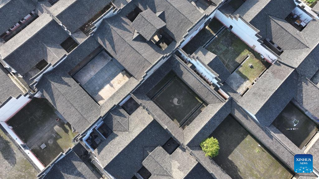 An aerial drone photo taken on March 26, 2025 shows part of the Hu Family Courtyard in Lingling District of Yongzhou City, central China's Hunan Province. Boasting a history of hundreds of years, the Zhou Family Courtyard and the Hu Family Courtyard, with their houses crisscrossing in a tightly structured and meticulously arranged layout, showcase a long history and rich cultural heritage of traditional Chinese villages. (Xinhua/Zhao Zhongzhi)