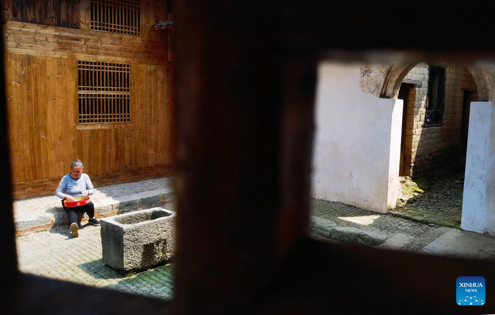 A villager selects beans at the Hu Family Courtyard in Lingling District of Yongzhou City, central China's Hunan Province, March 26, 2025. Boasting a history of hundreds of years, the Zhou Family Courtyard and the Hu Family Courtyard, with their houses crisscrossing in a tightly structured and meticulously arranged layout, showcase a long history and rich cultural heritage of traditional Chinese villages. (Xinhua/Zhao Zhongzhi)