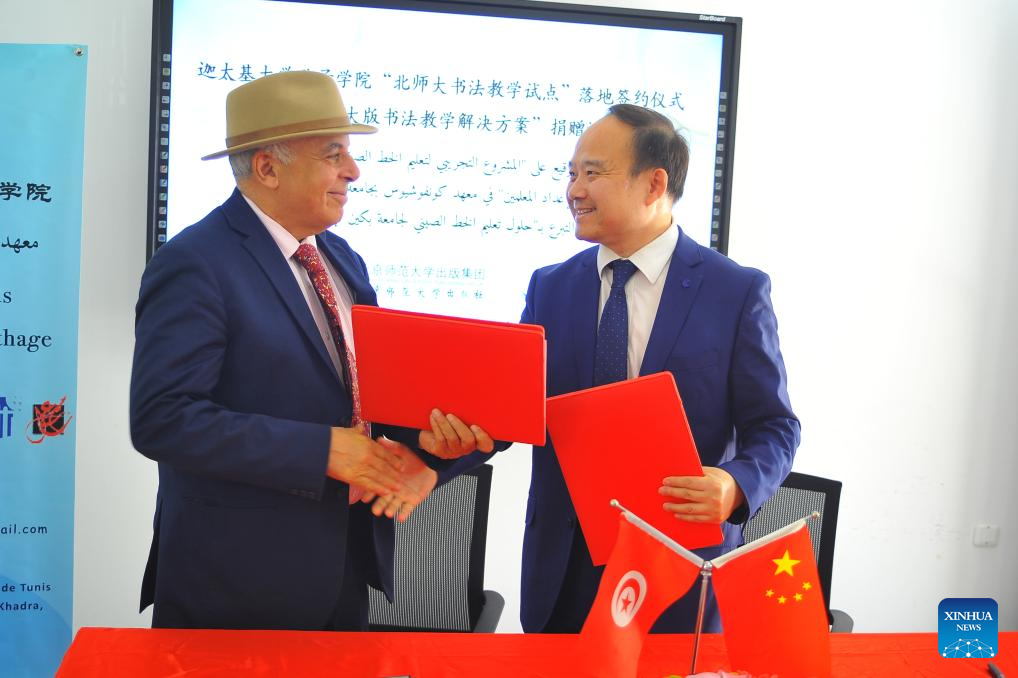 TUNIS, April 24 (Xinhua) -- A Chinese university press and the Confucius Institute at Carthage University signed a cooperation agreement on Chinese calligraphy education in the Tunisian capital on Thursday.