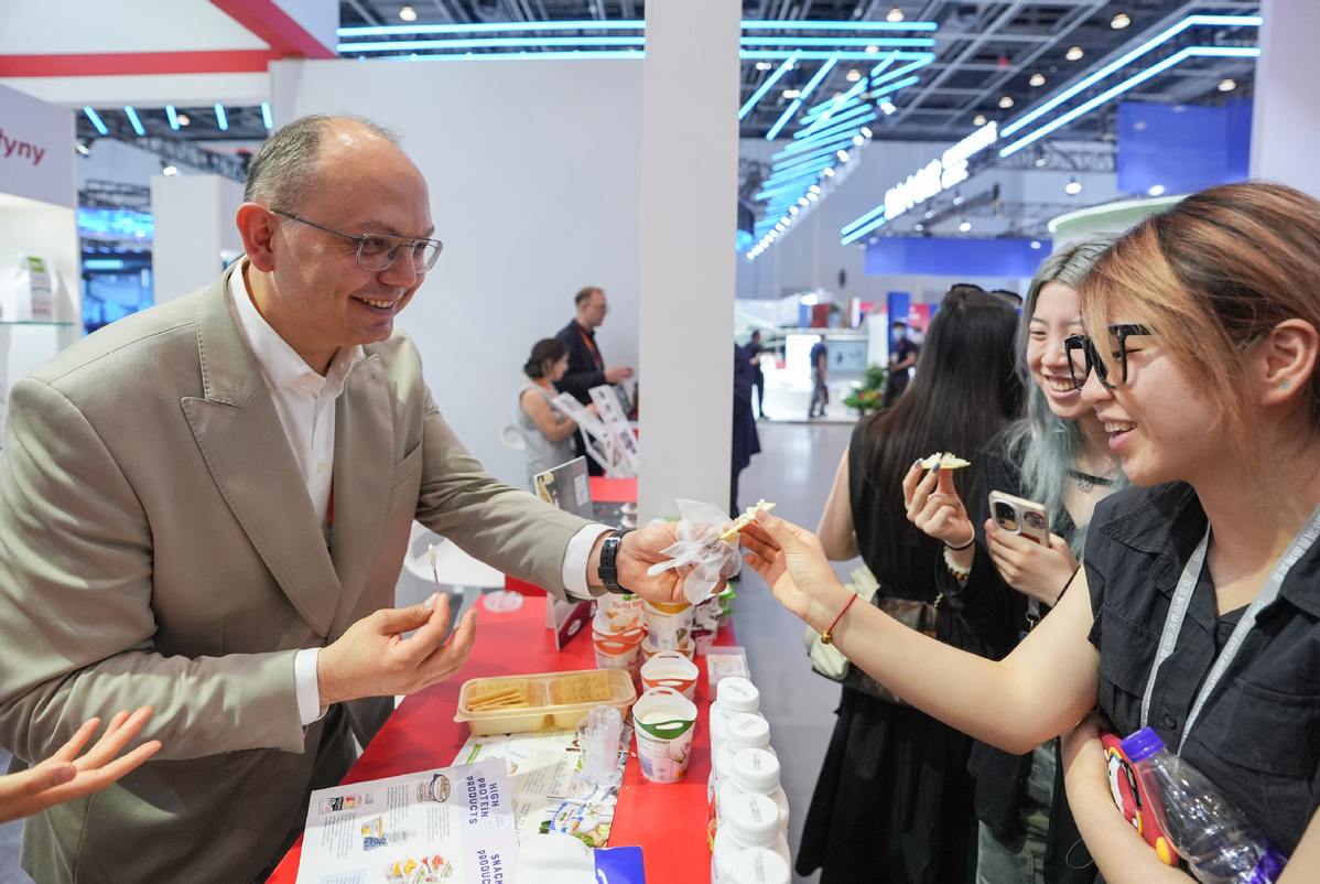 A Polish merchant promotes his cheese to visitors during the 4th China-CEEC Expo & International Consumer Goods Fair in Ningbo, East China's Zhejiang province, May 22, 2025. (Photo/Xinhua)