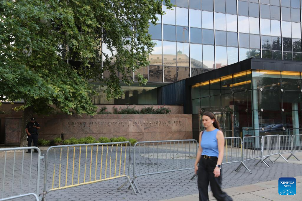 A pedestrian walks past the U.S. Court of International Trade in New York, the United States, June 10, 2025. (Xinhua/Liu Yanan)