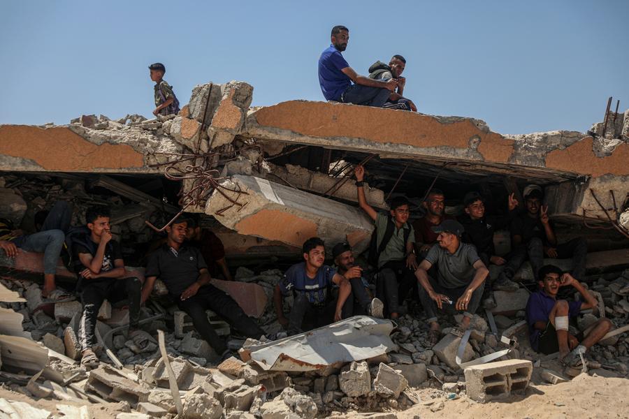 Palestinians are seen in the Sudaniya area, northern Gaza City, on June 12, 2025. (Photo by Rizek Abdeljawad/Xinhua)