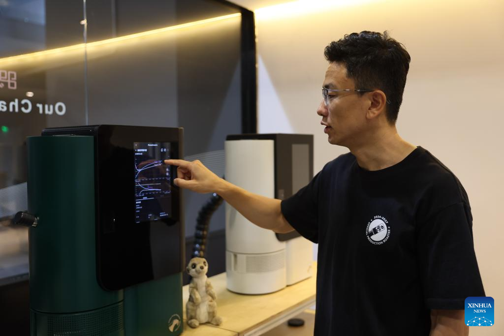 A staff member introduces a smart coffee machine at the Hongqiao Import Commodities Expo and Trade Center in Shanghai, east China, Sept. 9, 2025. (Xinhua/Wang Xiang)