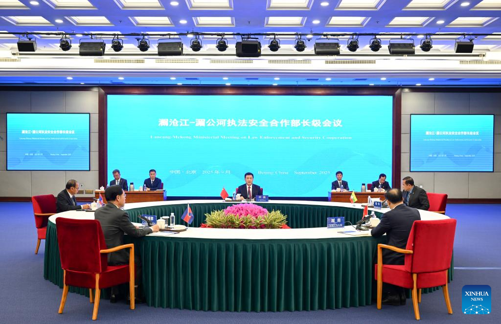 BEIJING, Sept. 15 (Xinhua) -- A Lancang-Mekong ministerial meeting on law enforcement and security cooperation was held in Beijing on Monday, with participants agreeing to enhance law enforcement and security cooperation.